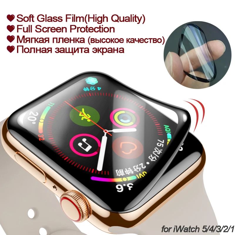 Screen Protector for apple watch 5/4 38 40 44 42mm 3D Full Curved PET Soft Tempered film for Iwatch 3 2 1 Full glue| (Not Glass)