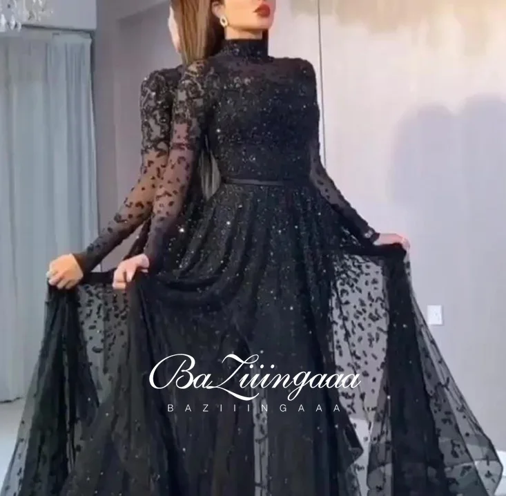 A Line Evening Dress Women 2021 Half Sleeves Long Gowns Elegant Abendkleider Robe Soiree Graduation Party Gowns with Pockets
